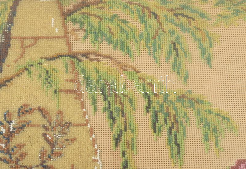 Régi képkeret, sérült, benne gobelin, 43x38 cm
