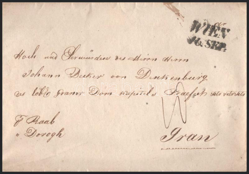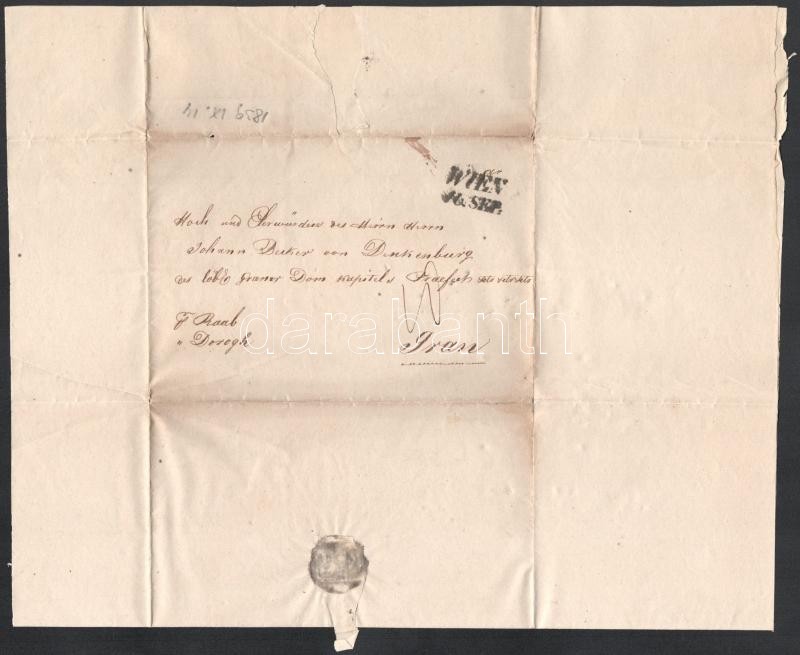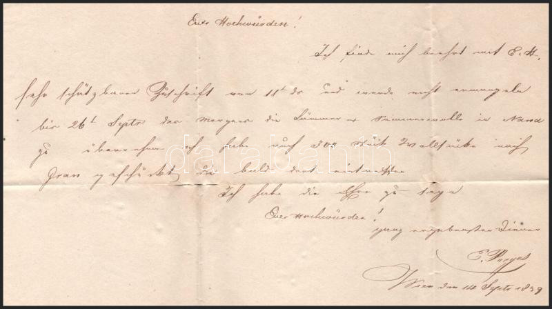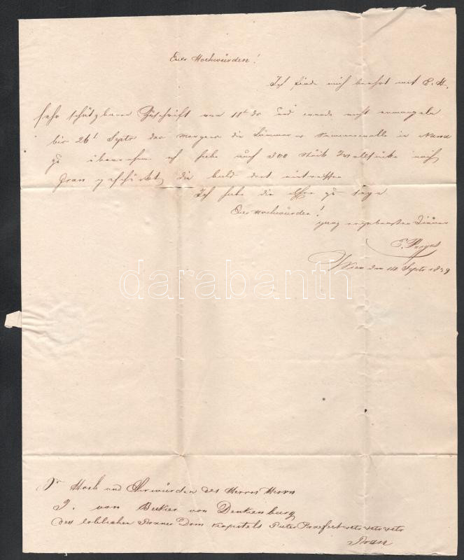 1839 Bécs, Becker János Nepomuk (1781-1849) esztergomi kanonoknak címzett, német nyelvű levél, kisebb szakadásokkal