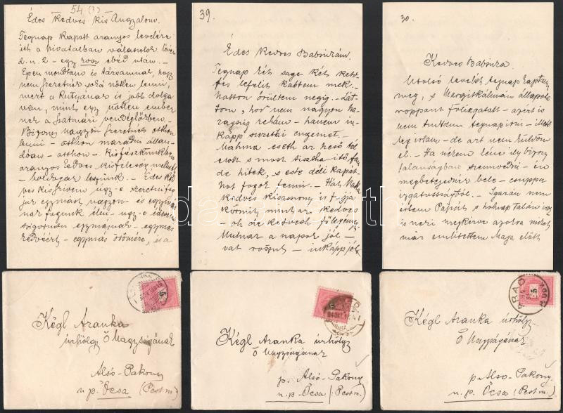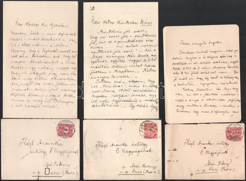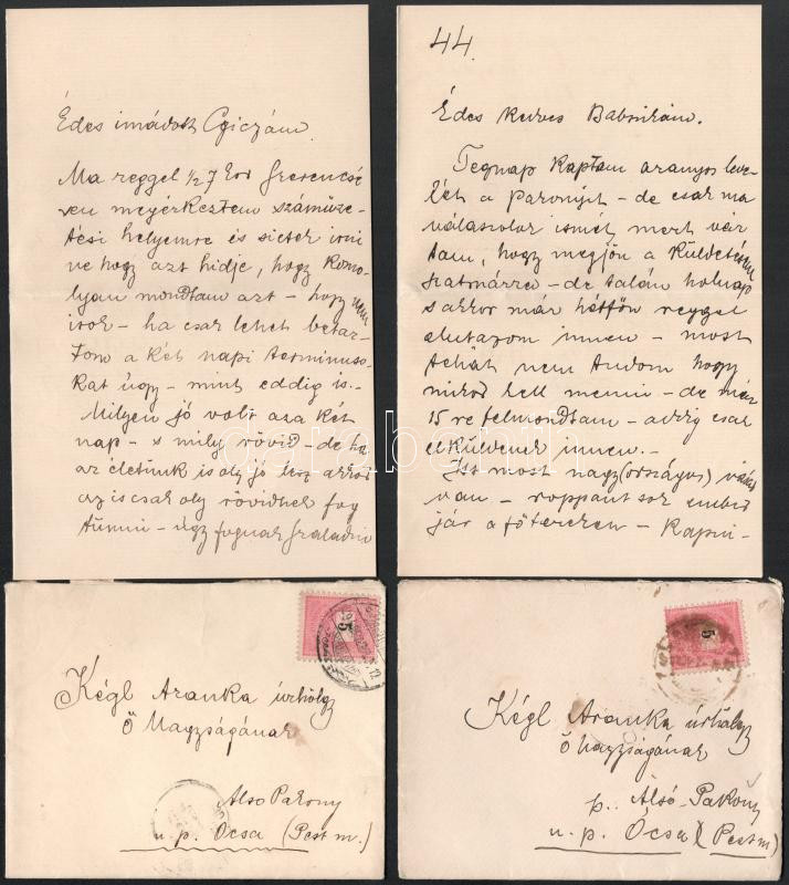 Description: 1894 Jendrassik Kornél (1868-1931) gépészmérnök és szabadalmi bíró (Jendrassik György Széchenyi-díjas magyar gépészmérnök apja, valamint Jendrassik Ernő orvos testvére) levelei későbbi feleségének, Kégl Arankának. 8 darab levél Aradról Ócsára címzett borítékban.