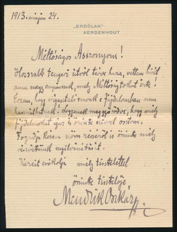 1913 Mendlik Oszkár (1871-1963) festőművész kézzel írt, aláírt részvét... https://www.darabanth.com/en/514-Auction-philately-postcards-numismatics-artwork-books-colletibles-jewelry/515.0/Art-and-other-collectibles/Historical-documents-manuscripts~69/1913-Mendlik-Oszkar-1871-1963-festomuvesz-kezzel-irt-alairt-reszvetele-tolcsvai-Bonis-~II3481462