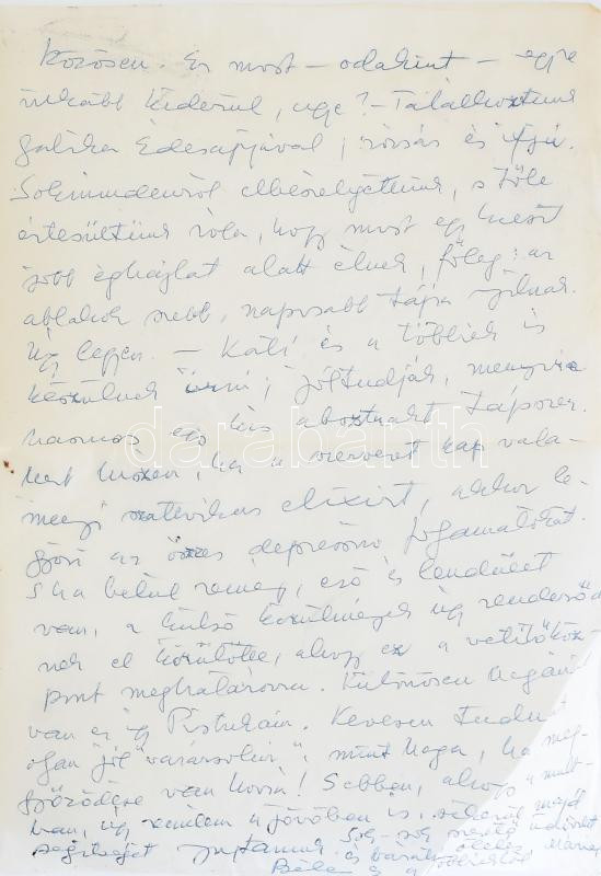 1966 Szepes Mária (1908-2007) ÃrónÅ‘ és férje, Szepes Béla (1903-1986) sÃelÅ‘ és gerelyhajÃtó olimpikon, karikaturista autográf levele, dátumozással (Bp., 1966. X. 4.), autográf aláÃrással ("Mária Béla és a TöbbiektÅ‘l.") Hajtott, az egyik sarkán gyűrÅ‘déssel, 3 beÃrt oldal, 2 sztl. lev.