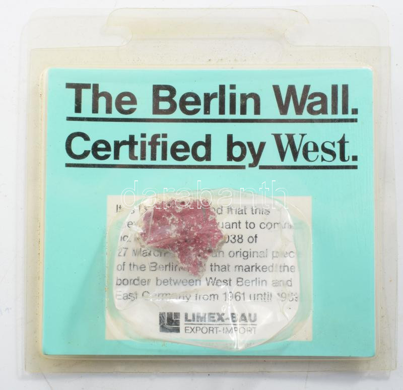 Berlini fal egy darabja, certifikáttal, bontatlan.