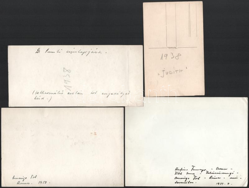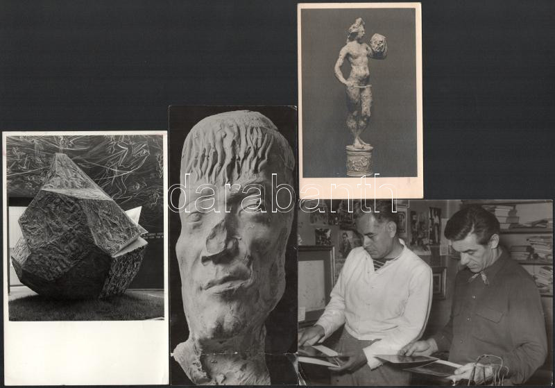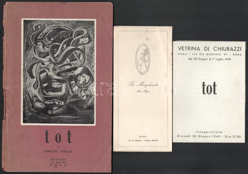 ca 1950 Amerigo Tot (Tóth Imre) (1909-1984) festÅ‘művész, grafikus, szobrászművész 3 db autográf sorokkal ellátott fotó saját műveirÅ‘l, kettÅ‘ dedikált katalógus olaszországi kiállÃtásról az 1950-es évekbÅ‘l és egy dedikáció nélküli.