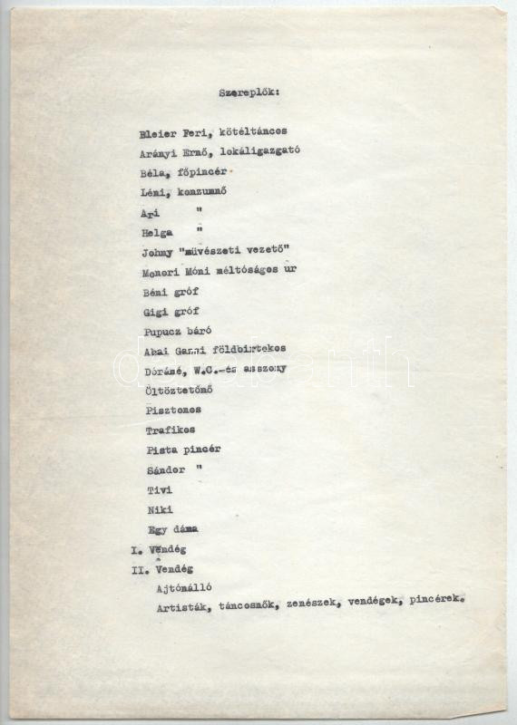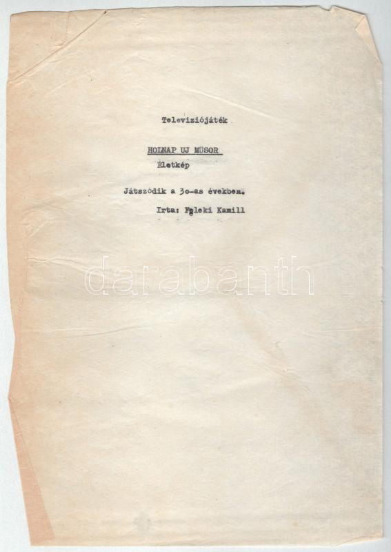 ca 1965 Feleki Kamill Holnap új menüsor c. televíziós játék forgatókönyve 49 oldalas gépelt kézirat kéziratos belejavításokkal 25 p.