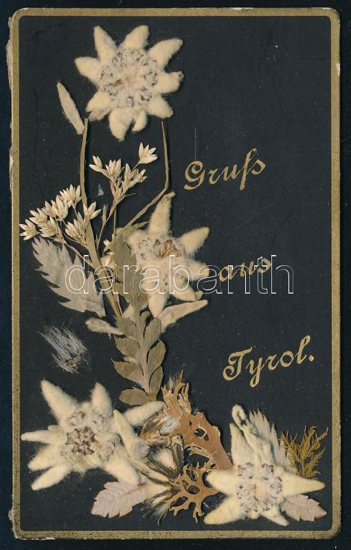 cca 1900 Keményhátú fotó kartonjára ragasztott havasi gyopár az Alpokból, Tirolból, 10,5×6,5 cm