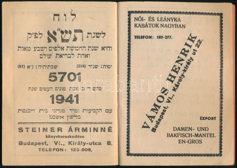https://www.darabanth.com/en/514-Auction-philately-postcards-numismatics-artwork-books-colletibles-jewelry/515.0/Art-and-other-collectibles/Judaica~74/1940-1941-Izraelita-zsebnaptar-Steiner-Arminne-Konyvkereskedese~II3463881