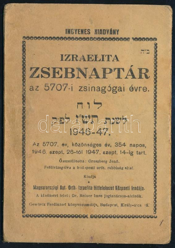 https://www.darabanth.com/en/514-Auction-philately-postcards-numismatics-artwork-books-colletibles-jewelry/515.0/Art-and-other-collectibles/Judaica~74/1946-1947-Izraelita-zsebnaptar-az-5707-i-zsinagogai-evre~II3463905