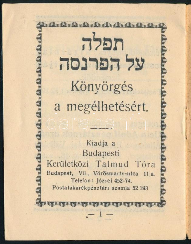 https://www.darabanth.com/en/514-Auction-philately-postcards-numismatics-artwork-books-colletibles-jewelry/515.0/Art-and-other-collectibles/Judaica~74/cca-1930-Konyorges-a-megelhetesert-Kiadja-a-Budapesti-Keruletkozi-Talmud-Tora-Bp-Grunw~II3480419