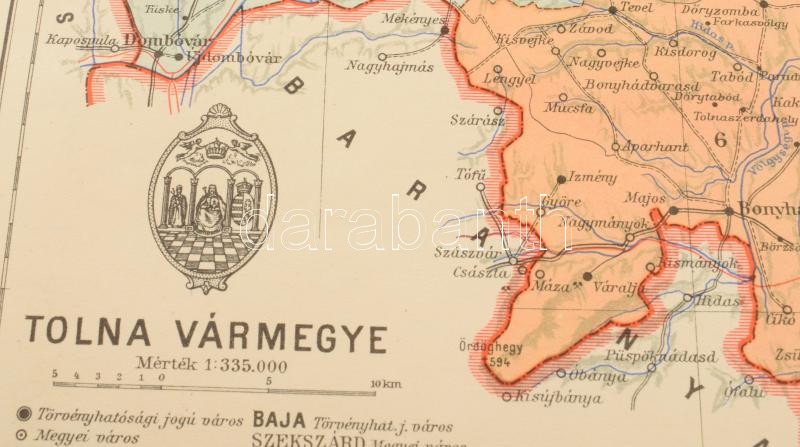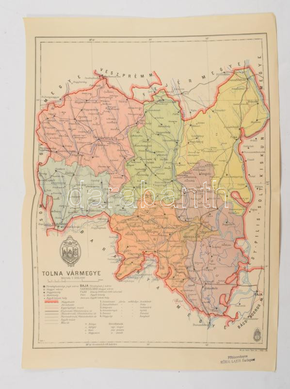 [Térkép] Tolna vármegye térképe. Mértéke: 1:335.000. (1941).