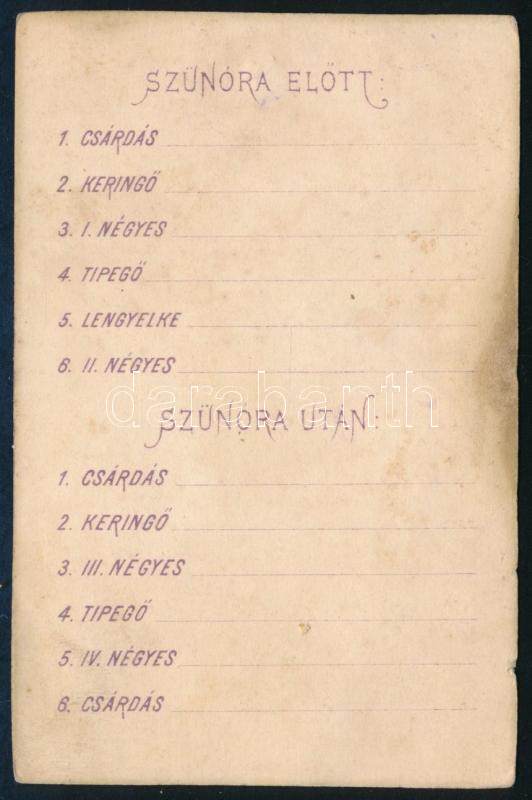 1885 A Honvéd Bál táncrendje, kitöltetlen