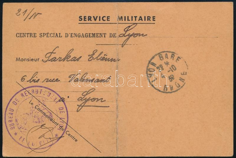 https://www.darabanth.com/en/514-Auction-philately-postcards-numismatics-artwork-books-colletibles-jewelry/515.0/Art-and-other-collectibles/Military~78/1939-Lyon-a-francia-hadsereg-behivojegye-magyar-onkentes-reszere-Bureau-de-recrutement-de-L~II3247156