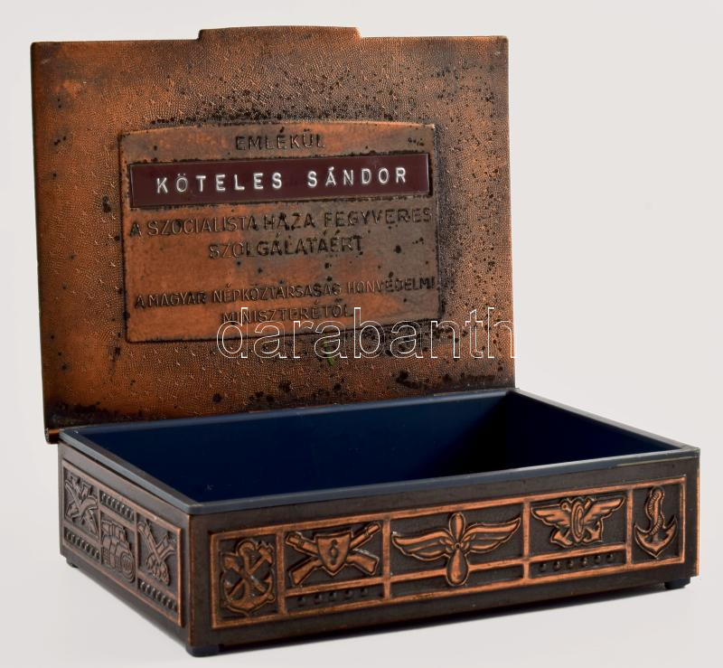 Kiváló katona doboz, belsejében felirat: Emlékül a szocialista haza fe... https://www.darabanth.com/en/514-Auction-philately-postcards-numismatics-artwork-books-colletibles-jewelry/515.0/Art-and-other-collectibles/Military~78/Kivalo-katona-doboz-belsejeben-felirat-Emlekul-a-szocialista-haza-fegyveres-szolgalataert-~II3439952