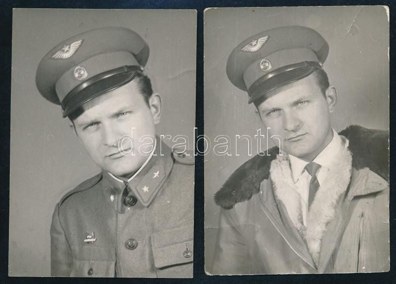 Magyar Néphadsereg, repülős tiszt portréi, 2 db fotó, az egyik hátolda...