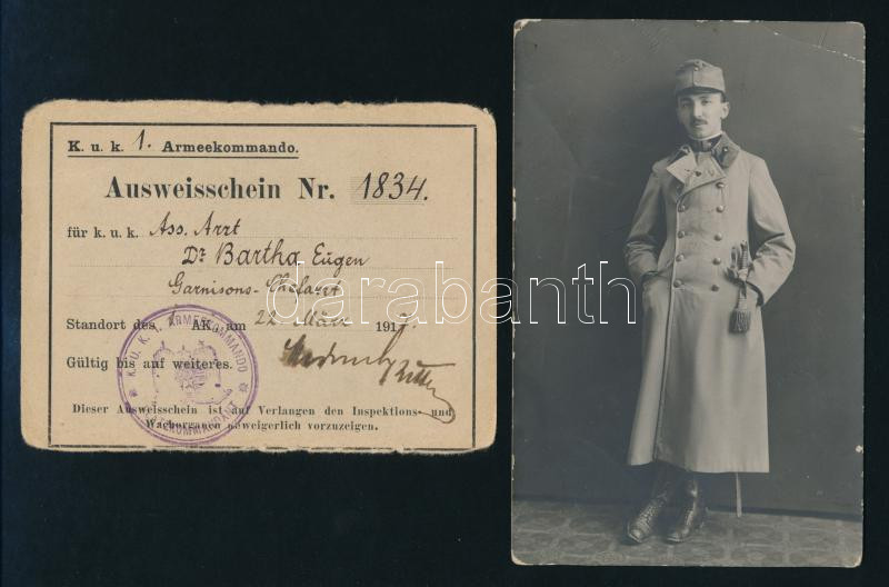 https://www.darabanth.com/en/514-Auction-philately-postcards-numismatics-artwork-books-colletibles-jewelry/515.0/Art-and-other-collectibles/Military~78/cca-1910-Bartha-Jeno-katonai-orvos-fotolap-es-igazolvany-reszlet~II3407389