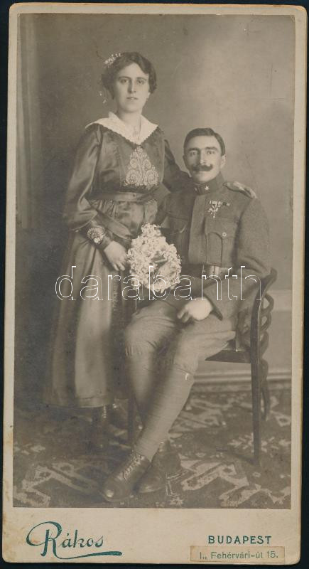cca 1915 Katona feleségével, keményhátú fotó Rákos (Kozmata utóda) bud...