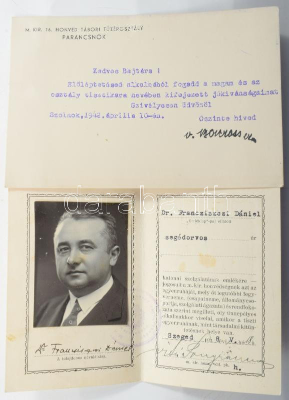 cca 1927-1951 Francziszczi Dániel (1898-1955) békéscsabai orvos iratai... https://www.darabanth.com/en/514-Auction-philately-postcards-numismatics-artwork-books-colletibles-jewelry/515.0/Art-and-other-collectibles/Military~78/cca-1927-1951-Francziszczi-Daniel-1898-1955-bekescsabai-orvos-iratai-hivatalos-levelek-katona~II3482950