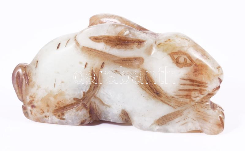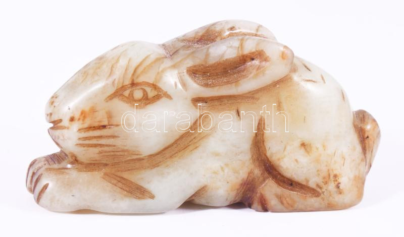 Kínai faragott jáde nyúl medál, h: 4,5 cm