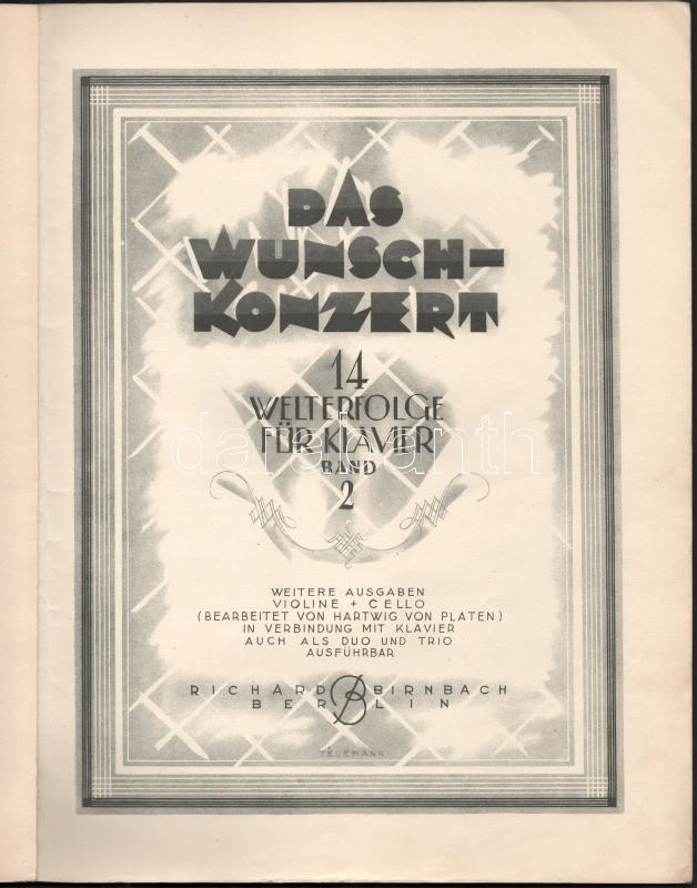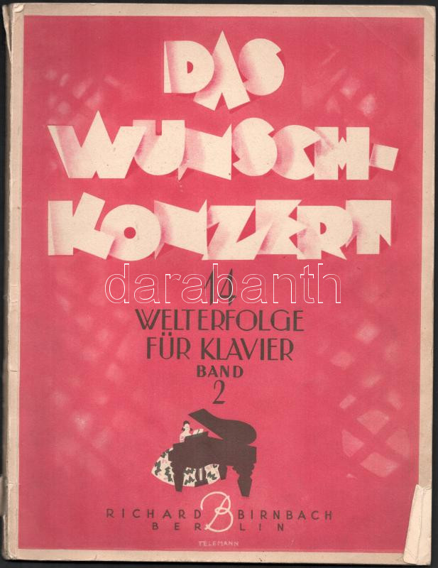 Das Wunschkonzert. 14 Welterfolge für Klavier Band 2. Berlin, é.n., Richard Birnbach, 72 p. Német nyelven. Kiadói papírkötés, sérült gerinccel.