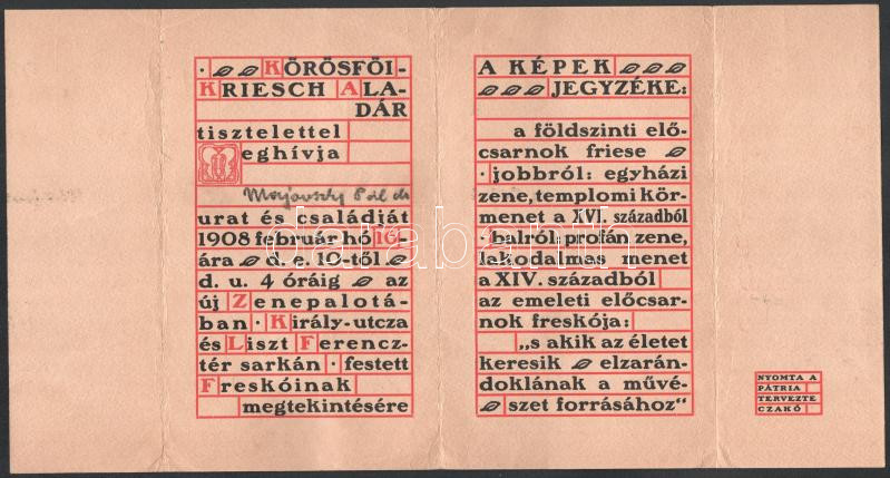 1908 Körösfői-Kriesch Aladár festőművész kiállítási meghívója