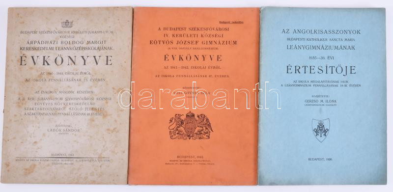1936-1941 3 db fővárosi tanintézeti, iskolai értesítő könyv
