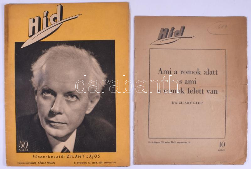 1941-1942 A Híd című újság 2 db száma, az egyik címlapján Bartók Béla ...