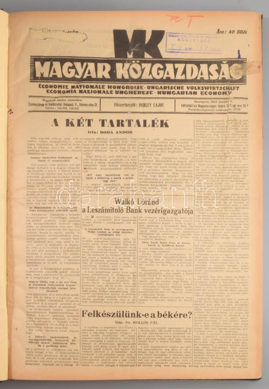 1942 Magyar Közgazdaság XII. évf. 1-52. sz., 1942. jan. 1. - dec. 24. ... https://www.darabanth.com/en/514-Auction-philately-postcards-numismatics-artwork-books-colletibles-jewelry/515.0/Art-and-other-collectibles/Printed-Materials~83/1942-Magyar-Kozgazdasag-XII-evf-1-52-sz-1942-jan-1-dec-24-sz-Foszerk-Perley-Lajo~II3475575