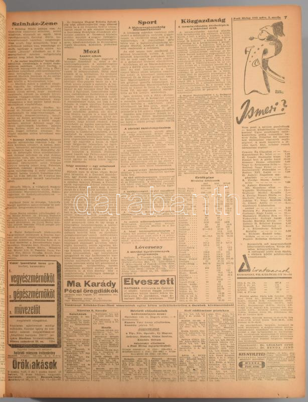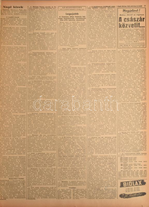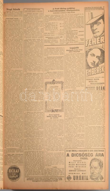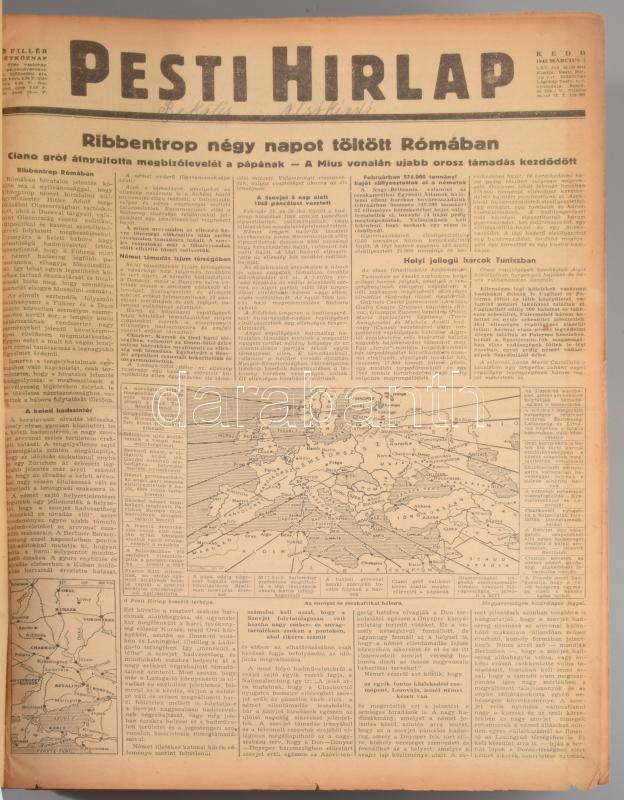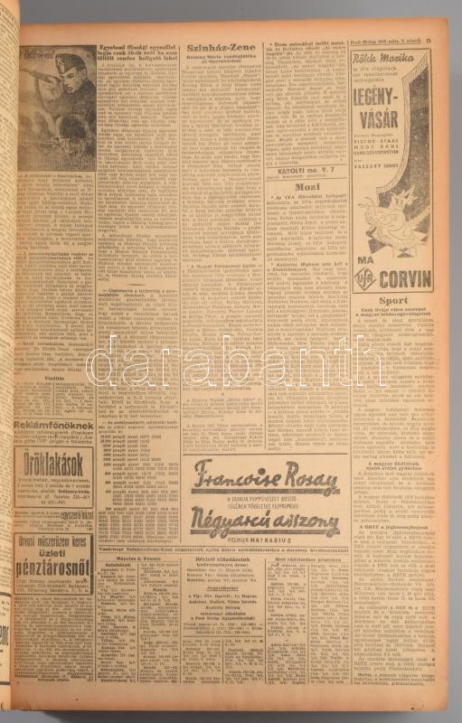1943 Pesti Hírlap LXV. évf. 1-25. sz.. 26-48. sz., 49-72. sz., 73-96. sz., 97-122. sz. 1943. január 1 - május 30. Bennük a Képes Vasárnap számokkal is (1-4.,6.,8.,10.-20. sz. (összesen 3 hiány (5.,7.,9.)