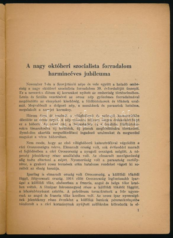 1947 Harmincéves a Szovjetunió (műsorfüzet), Magyar-Szovjet Művelődési...