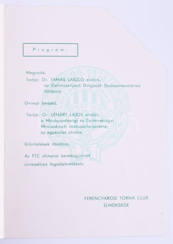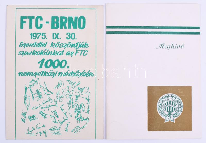 1974 FTC 1000. nemzetközi mérkőzése emléklap + 1975 FTC díszközgyűlés ...