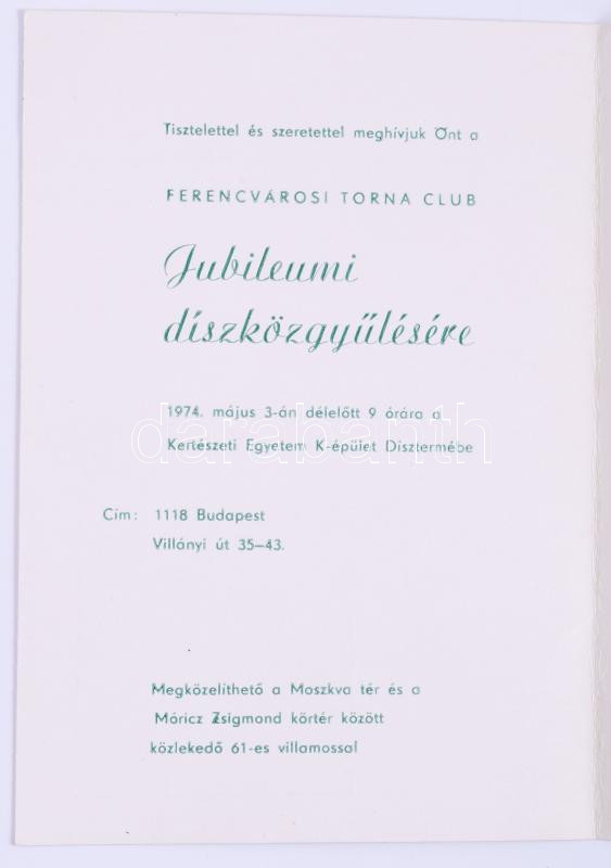 1974 FTC 1000. nemzetközi mérkőzése emléklap + 1975 FTC díszközgyűlés meghívó