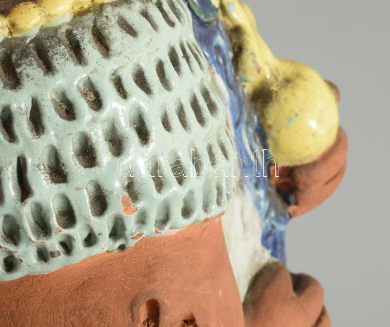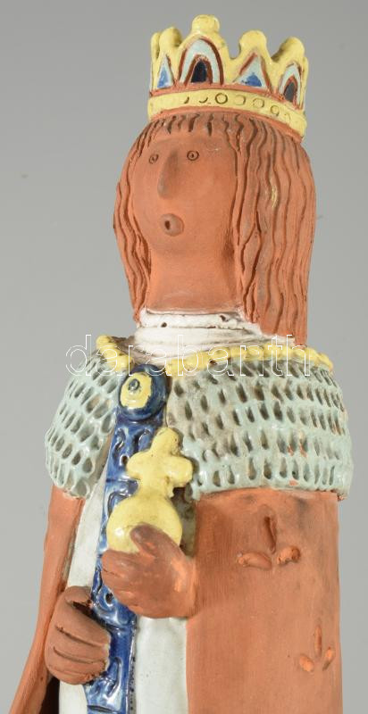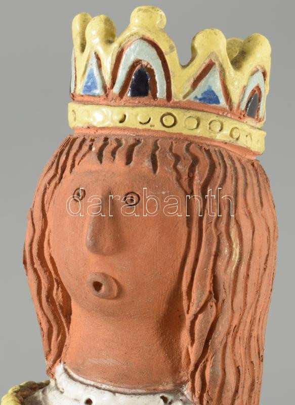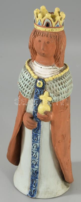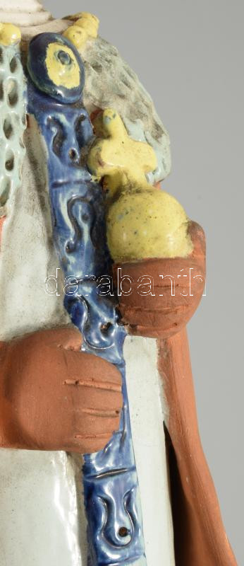 Hadusovszky Gizi: Hunyadi János. Részben mázas kerámia, jelzett, kis sérülésekkel, m: 31 cm