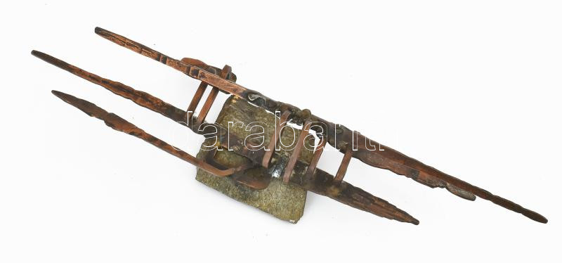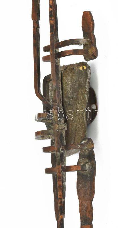 Haraszty István (1934-2022): Absztrakt kompozíció. Réz, kő, jelzett, 49x11x9 cm.