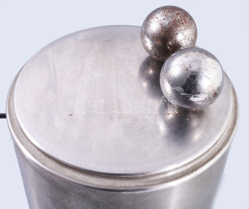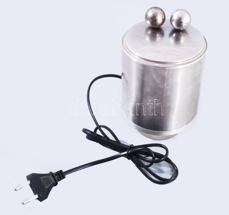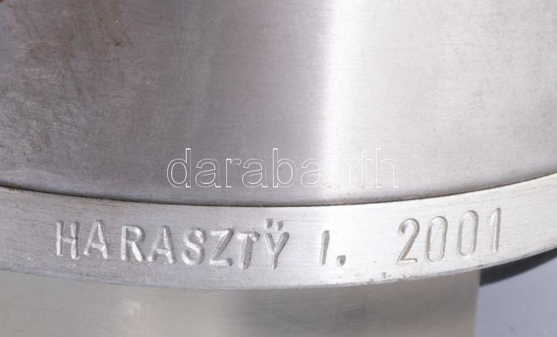 István Haraszty (1934?2022): Kettecskén. Magnetic stainless-steel sculpture with electrical design. Signed on the side: ?HARASZTY I. 2001?. Made in 2 copies; its pair is in an American private collection. Metal, electric motor, magnet, height: 16 cm. Reproduced in: János Frank ? Tibor Papp ? Tibor Wehner: Haraszty. Budapest, 2005, 123p.