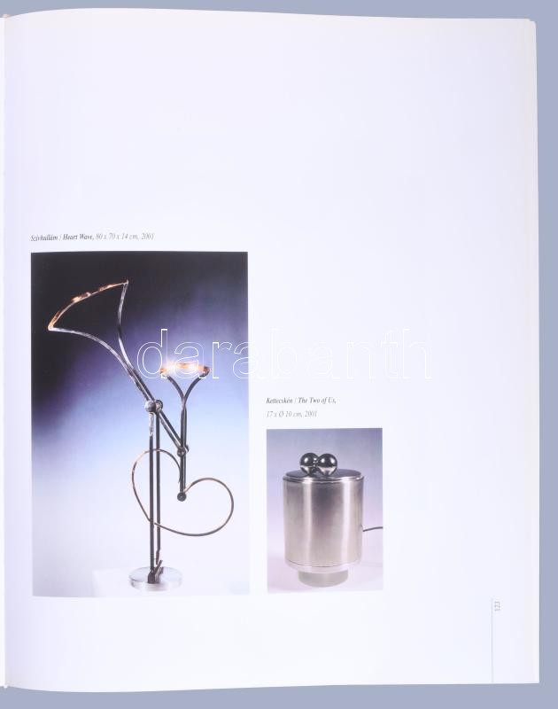 Haraszty István (1934-2022): Kettecskén. Mágneses rozsdamentes acél szobor elektromos kialakítással. Jelzett az oldalán: "HARASZTY I. 2001". Készült 2 példányban, párdarabja amerikai magángyűjteményben található. Fém, elektromotor, mágnes, m: 16 cm. Reprodukálva: Frank János - Papp Tibor - Wehner Tibor: Haraszty. Bp., 2005, 123. oldal.