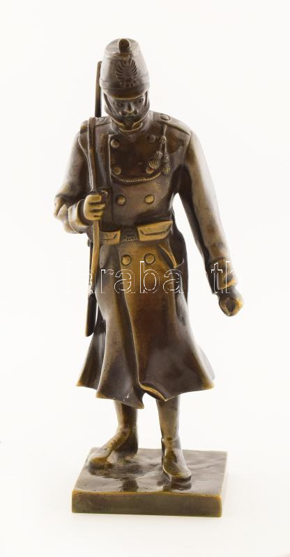 I. világháborús magyar katona szobra. Bronz, patinázott, talpán BÁV címkével. 19,5 cm Puska vége sérült.