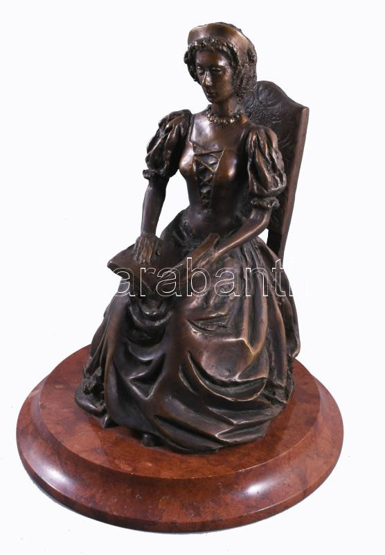 Józsa Lajos (1944- ) - Lórántffy Zsuzsanna. Bronz, márvány talapzaton, jelzett, m: 30 cm