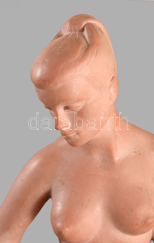 Kelemen Kristóf (1922-2001): Női akt törölközővel. Terrakotta, jelzett, kis kopással, m: 38,5 cm