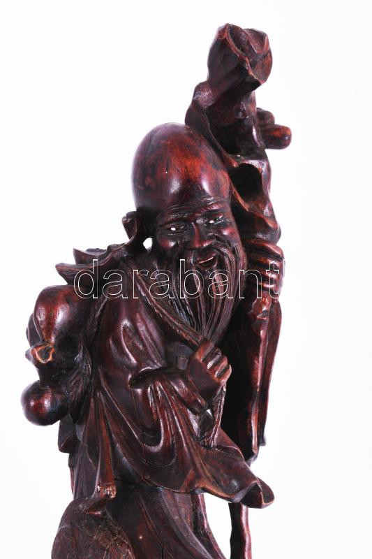 Keleti bölcset ábrázoló nemesfa faragott fa szobor. 27 cm