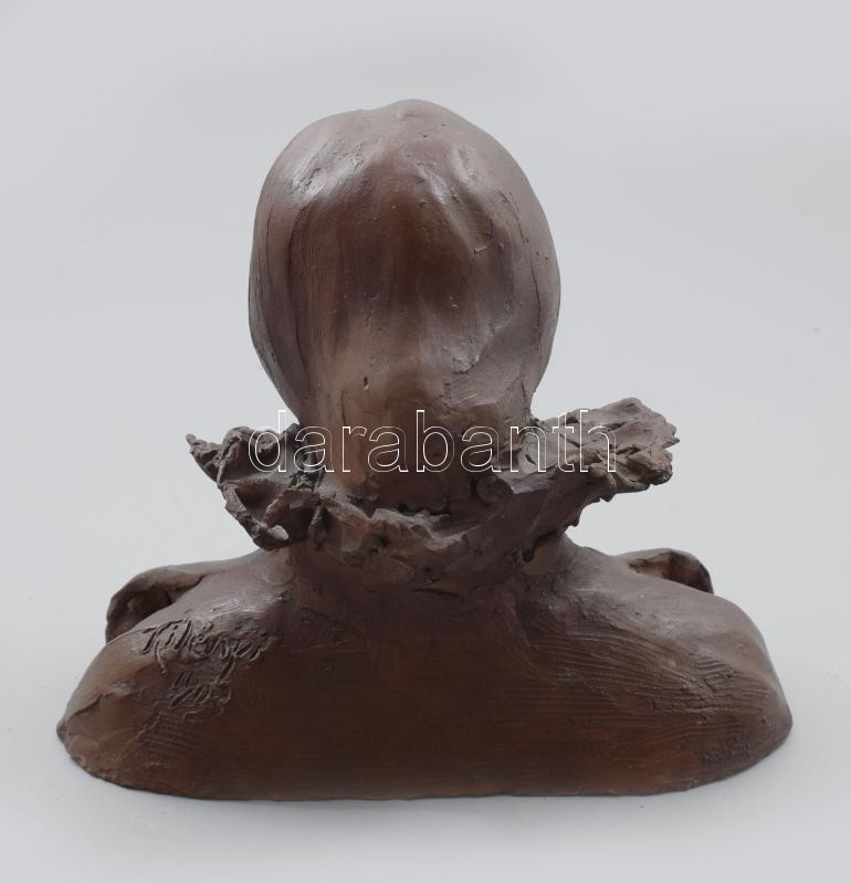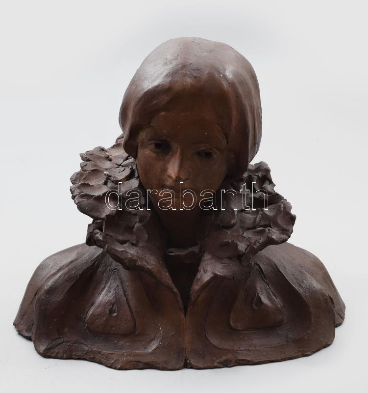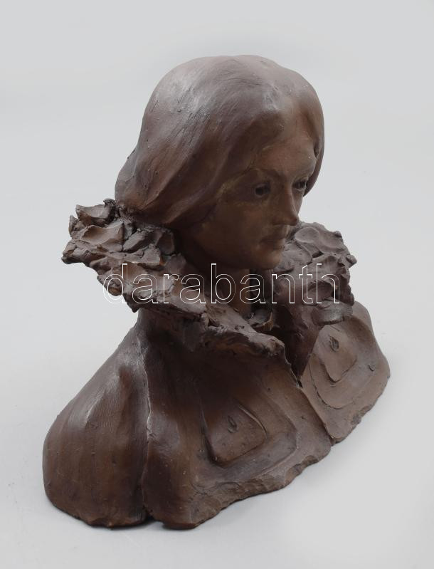 Kilényi Gyula (Julio Kilenyi, 1885-1959): Női büszt, 1903. Engóbozott terrakotta, jelzett, kis sérülésekkel, m: 19 cm /// Julio Kilenyi magyar származású, Argentínában majd az Egyesült államokban alkotó szobrász, aki elsősorban érmetervezőként vált világhírűvé. Szobrai ritkán bukkannak fel aukciókon. /// Kilényi Gyula (Julio Kilenyi, 1885-1959): Female Bust, 1903. Engobed terracotta, signed, with minor damages, height: 19 cm /// Julio Kilenyi was a Hungarian-born sculptor who worked in Argentina and later in the United States, best known worldwide as a medal designer. His sculptures rarely appear at auctions.