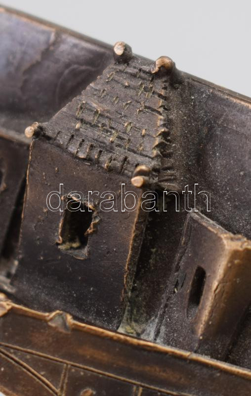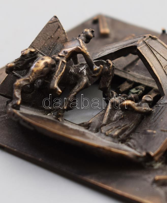 Kótai József (1940-): IV. László Sopron kapujában. 2003, patinázott bronz, egyedi munka, 8x8 cm /// Proveniencia: az alkotó validálta.