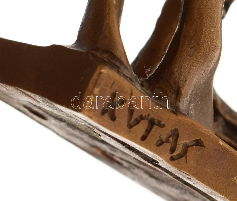 Kutas László (1936-): Kalapos akt. Bronz, márvány talapzaton, jelzett, m: 31 cm