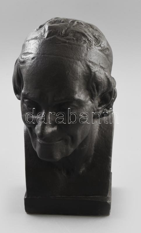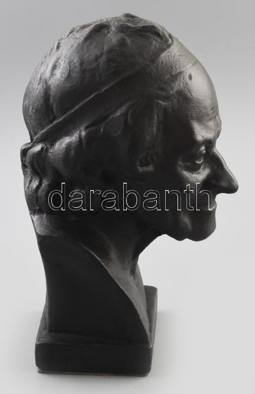 Öreg Voltaire. Ferdinand Barbedienne (1810-1892) büsztje alapján készült XX. sz. eleji gipsz másolat. Jelzés nélkül, feketére mázolva, hibátlan, m: 24,5 cm