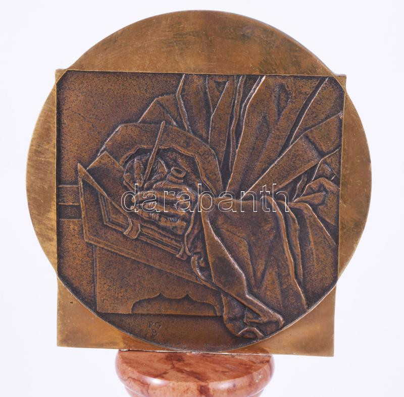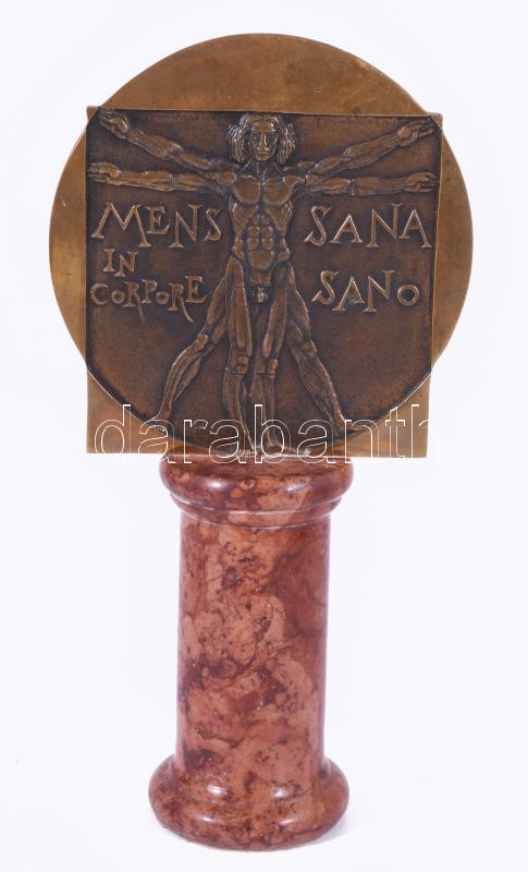 Pogány Gábor Benő (1962-): Kővári Tamás-díj. Bronz, márvány talapzaton, jelzett, m: 24 cm