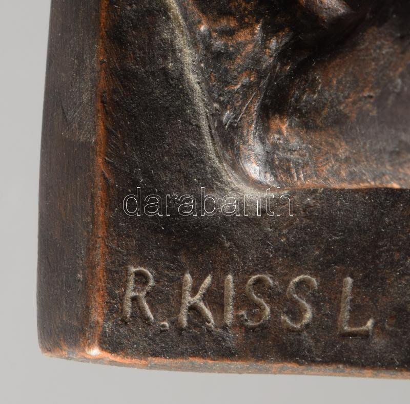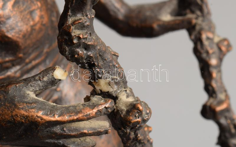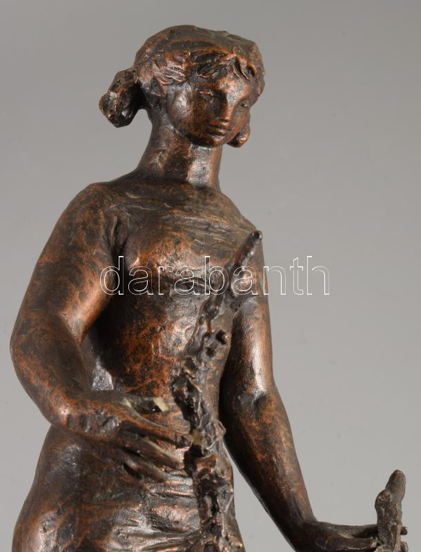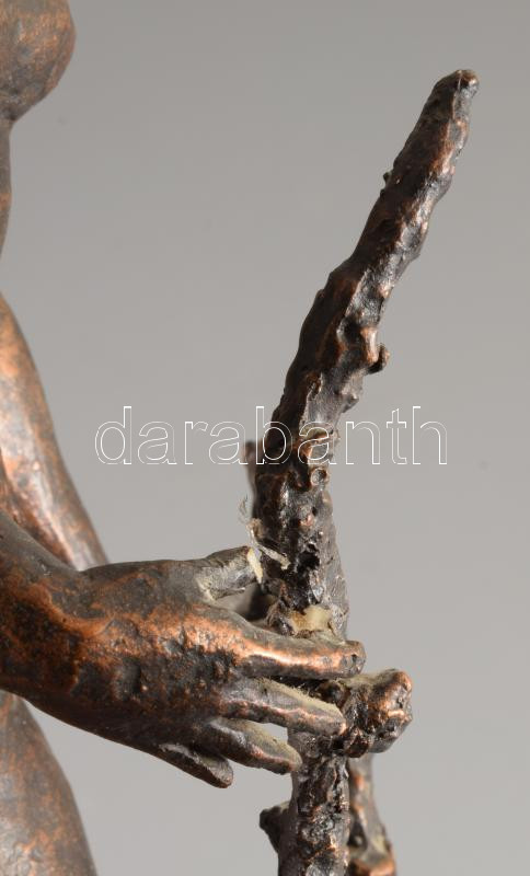 R. Kiss Lenke (1926-2020): Lány ággal. Képcsarnok címkével, jelzett, patinázott műgyanta, ujja sérült, m: 38 cm