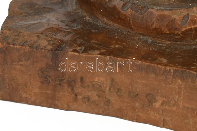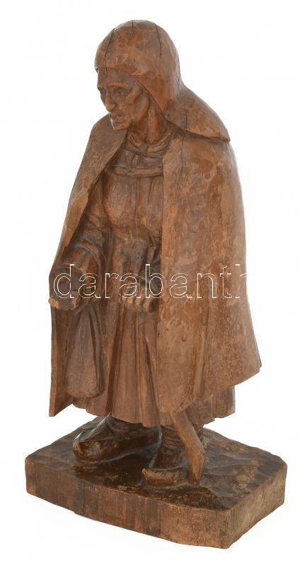Szervátiusz Jenő (1903-1984): Koldus. Faragott fa, jelzett, "Szervátiusz 1920" 36 cm Sérült, kissé hiányos / Carved wood, signed.