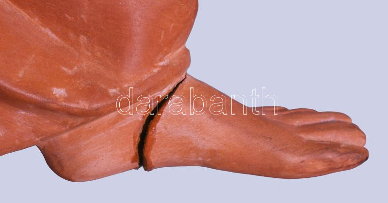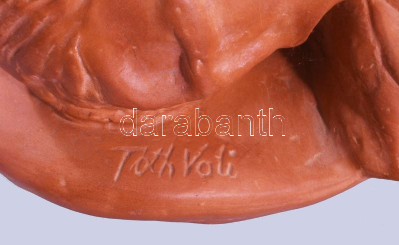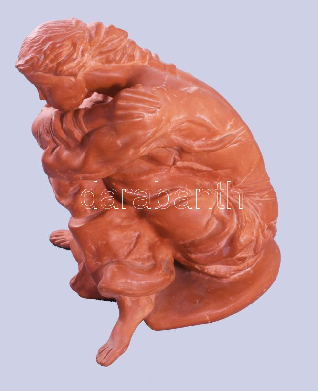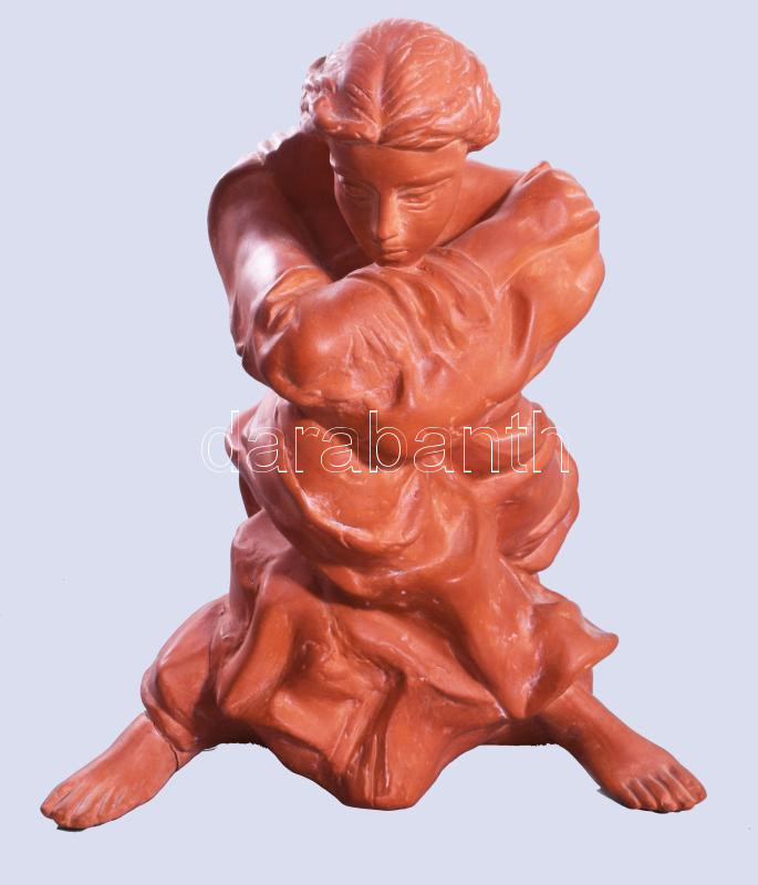 Tóth Valéria (1943- ): Szomorkodó. Terrakotta, jelzett, lábánál ragasztott, m: 28 cm
