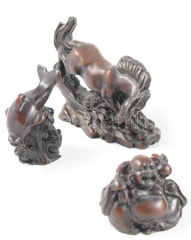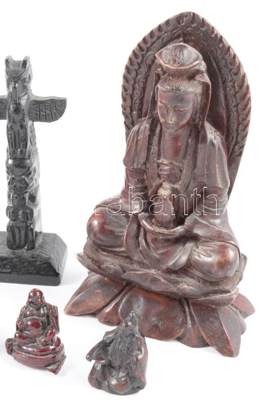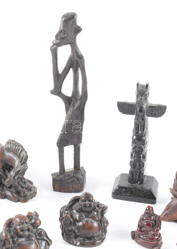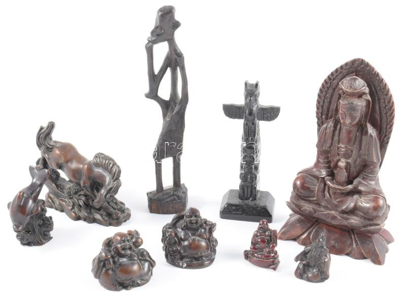Vegyes keleti és afrikai szobrok, műgyanta, fa. 9 db 4-17 cm.ig