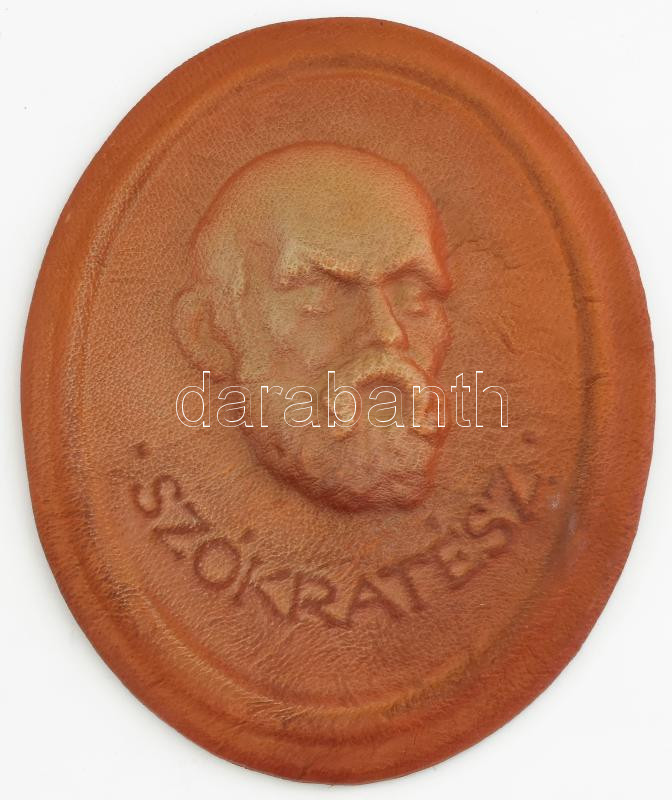 Zajácz Tamás (1952- ): Szókrátész. Bőr dombormű, fali dísz. Falra akasztható. Hátoldalán jelzett, bélyegzővel. 22x29cm