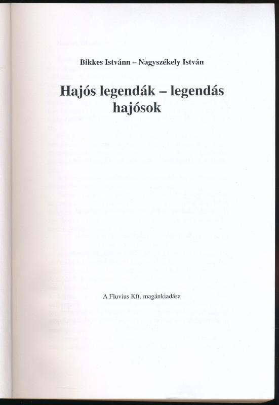Bikkes István - Nagyszékely István: Hajós legendák - legendás hajósok. Bp., 2013, Fluvius Kft., 224 p. Kiadói papírkötés.