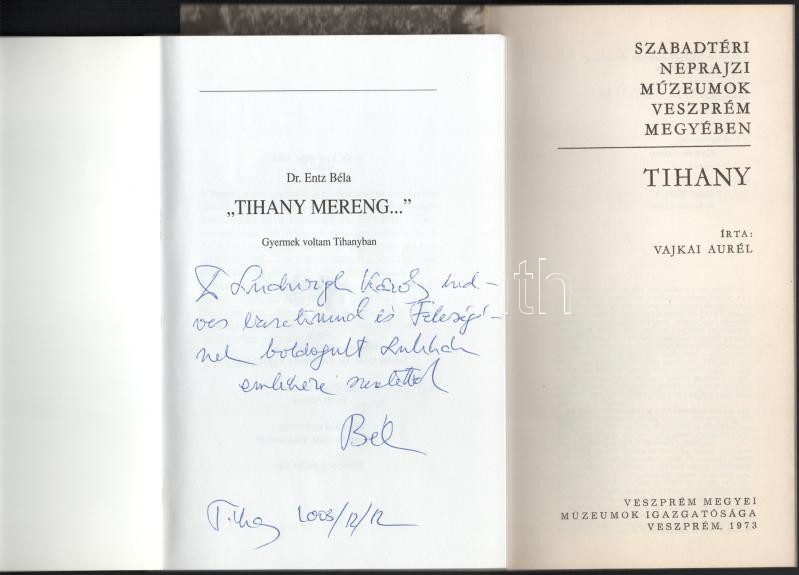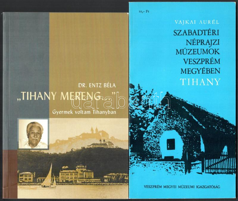 Entz Béla: "Tihany mereng..." Gyermek voltam Tihanyban. A szerző, a Entz Béla (1919-2012) hidrobiológus által DEDIKÁLT példány! Tihany,2003.,Bencés Apátság, 72 p. Kiadói papírkötés. + Vajkai Aurél: Szabadtéri Néprajzi Múzeumok Veszprém Megyében: Tihany. Veszprém, 1973., Veszprém Megyei Múzeumok Igazgatósága, 62 p. Kiadói papírkötés.